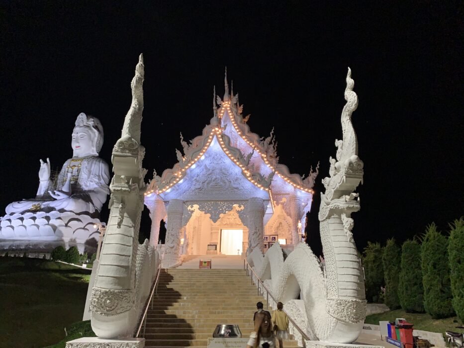 Eingebettet im Herzen von Chiang Rai bietet dieser Tempelkomplex mit seiner majestätischen weißen Guanyin-Statue mehr als nur spirituellen Trost; er bietet eine Reise, die die Seele und die Sinne erhebt.