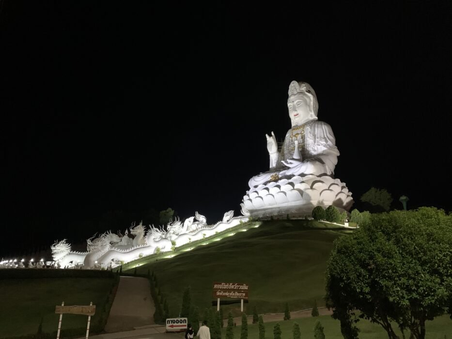 Die Bedeutung von Guanyin in buddhistischen und taoistischen Traditionen ist immens und steht für das ultimative Mitgefühl, das alles berührt. Ihre Präsenz in Form der riesigen Guanyin-Statue im Wat Huay Pla Kang dient Besuchern und Pilgern gleichermaßen als Leuchtfeuer der Hoffnung und des Trostes.