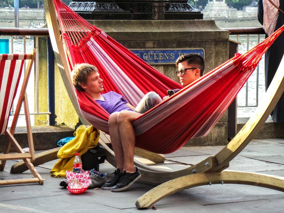 Die Leute nehmen sich Zeit für einander und genießen das Leben in vollen Zügen.