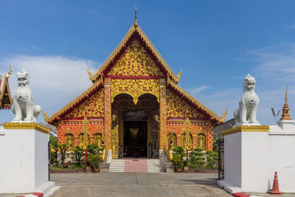 Die Architektur des Tempels, mit ihrer Vielzahl göttlicher Wesen, erzählt Geschichten aus der buddhistischen Kosmologie, während die Giebelholzschnitzerei im Ubosot eine Mischung aus Lanna- und burmesischem Stil zeigt und auf historische Verbindungen hinweist.