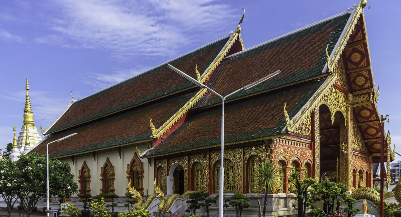Die Architektur des Tempels, mit ihrer Vielzahl göttlicher Wesen, erzählt Geschichten aus der buddhistischen Kosmologie, während die Giebelholzschnitzerei im Ubosot eine Mischung aus Lanna- und burmesischem Stil zeigt und auf historische Verbindungen hinweist.